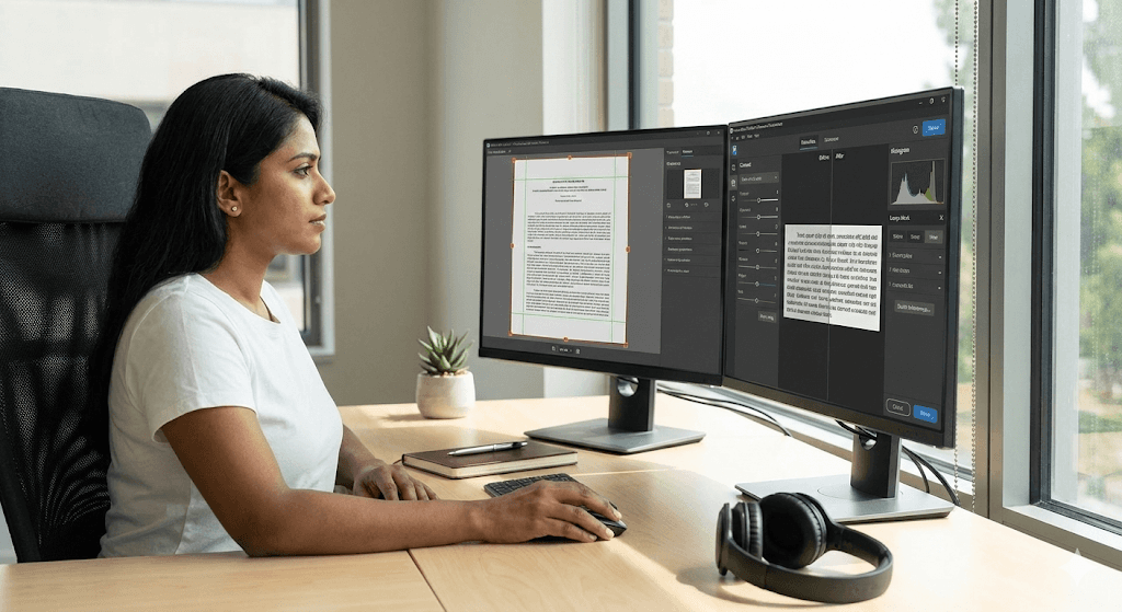 Improving clarity through cropping, deskewing, comparison, and advanced enhancement tools.